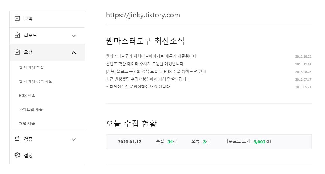최근에는 구글, 네이버 검색 유입이 1:1정도라 네이버도 중요해서 누락된글들은 모두 수집요청 하려고 한다. 하루에 50개까지 밖에 안되니까 3일 더 걸릴듯 ㅋㅋㅋㅋㅋ