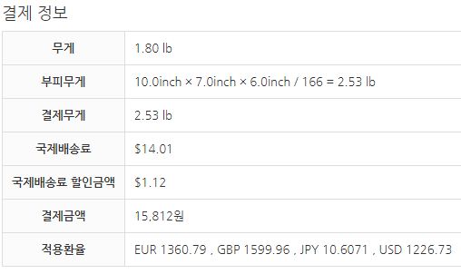 연필 4다스 무게는 1.8파운드인데 박스 부피무게 적용되어 3파운드 요금 15,812원 결제했다.
